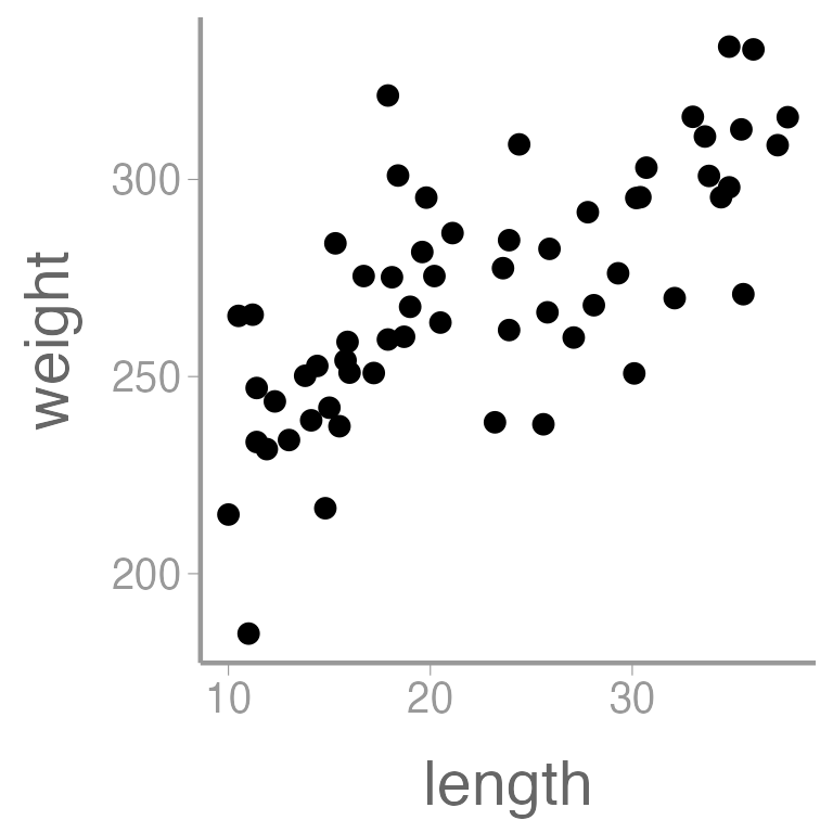 ggplot(dietdata, aes(x = length, y = weight)) +