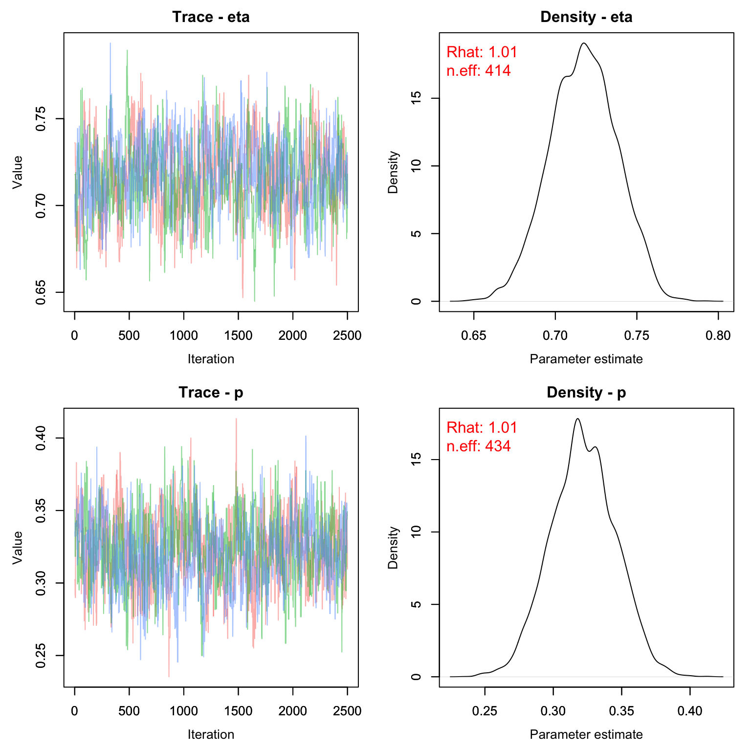 )Check the chains. Again, we’re really most interested in 1-eta (probability of infection).