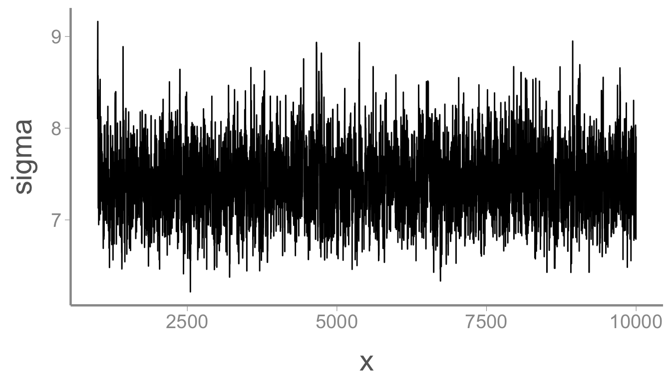 #> 48.02 50.17Also pretty close to the data generating value of 50. Finally, \sigma