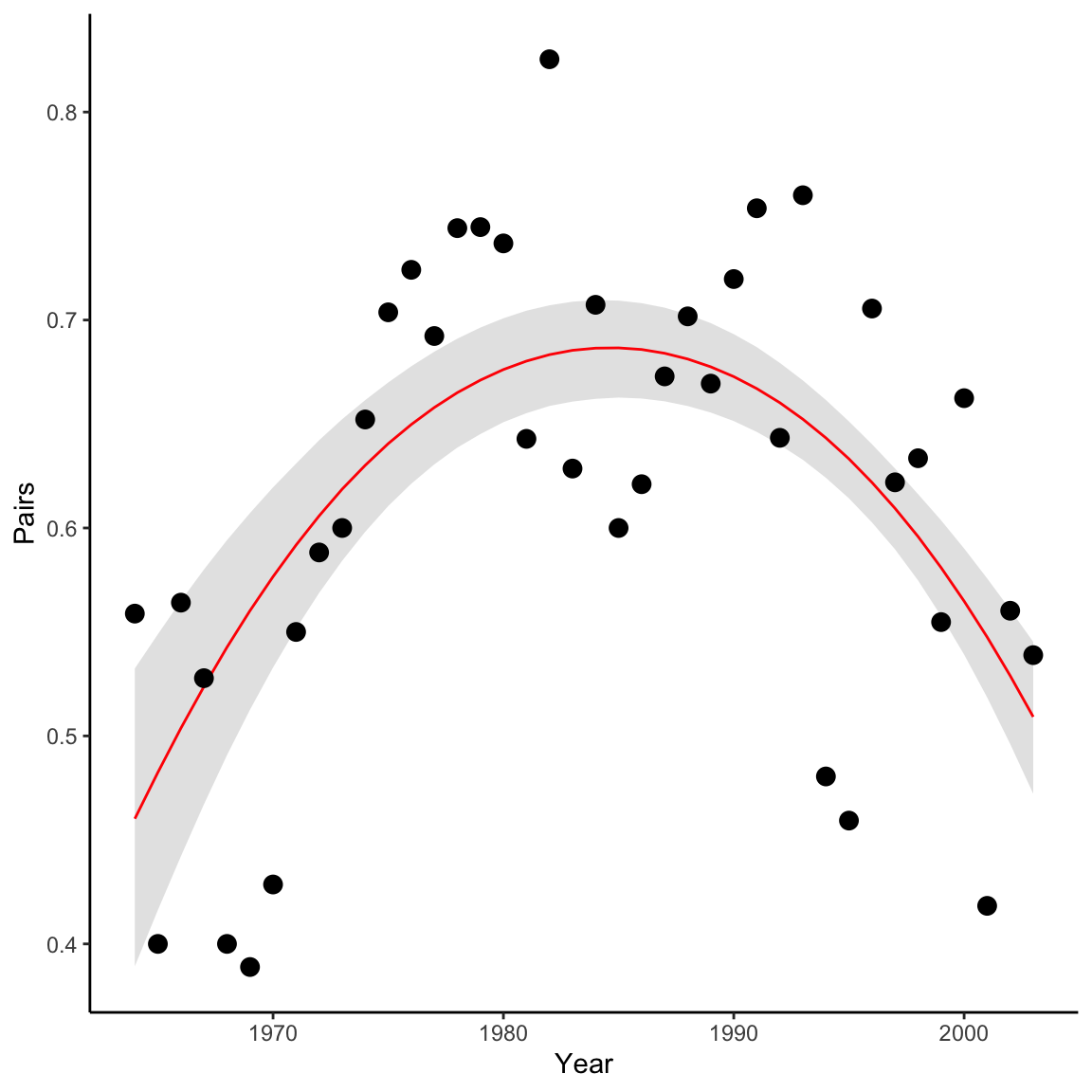 geom_point(aes(x = Year, y = R.Pairs/Pairs)) +