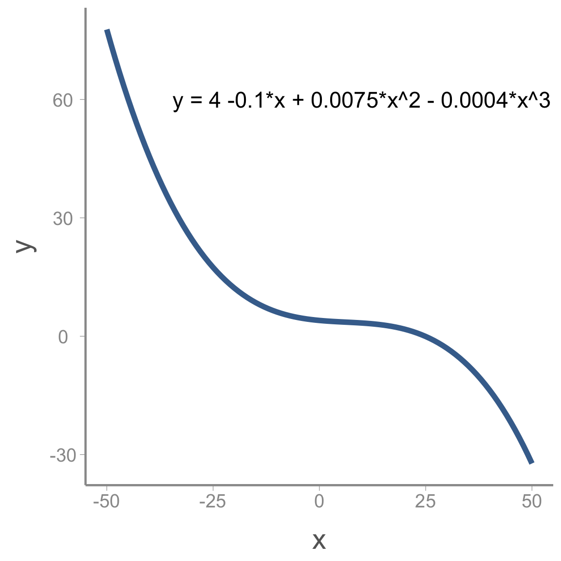 We can add more complex shape by adding additional polynomial terms. For example, including a cubic term creates an s-shaped curve: