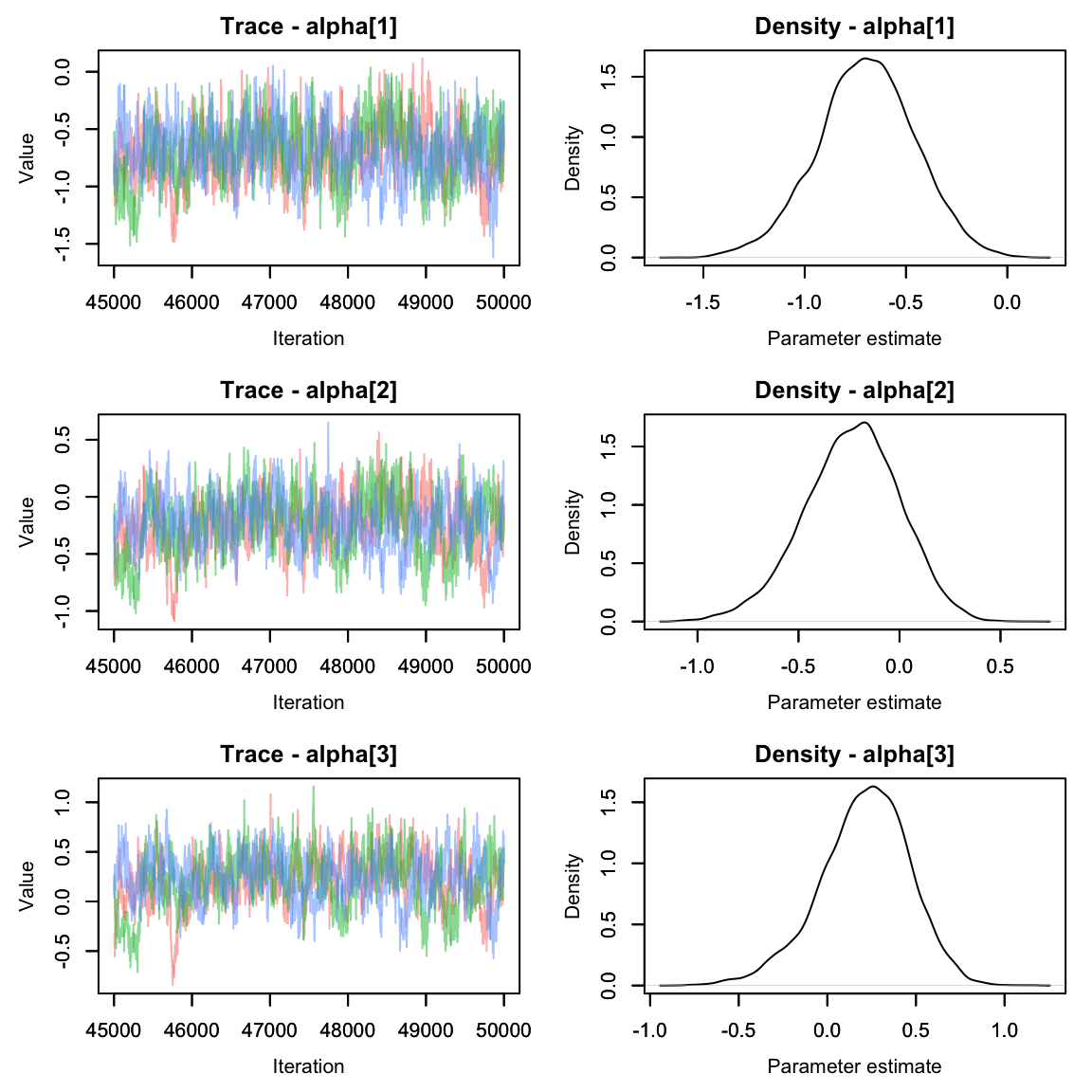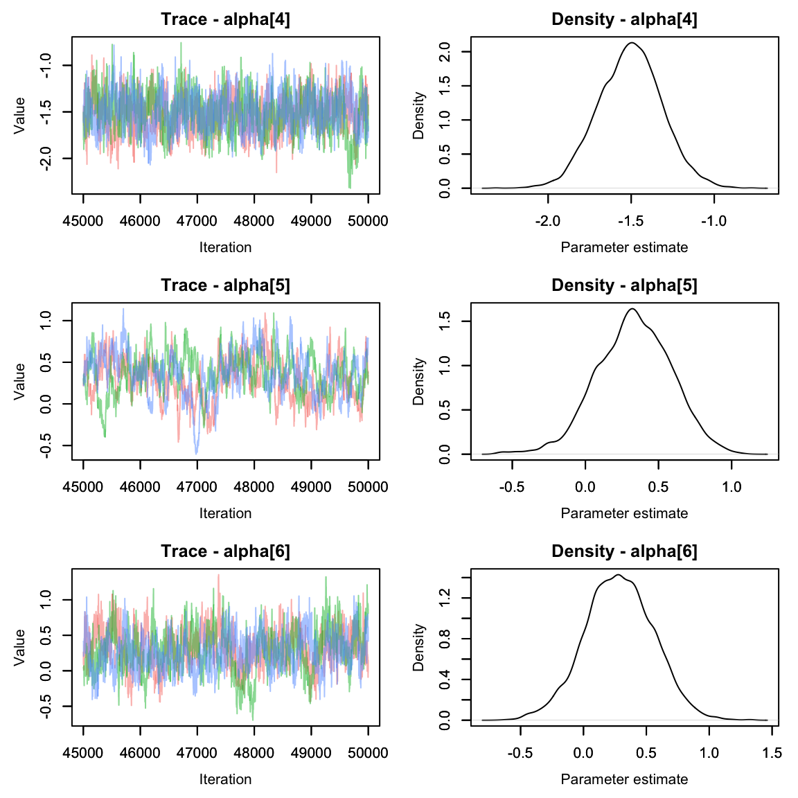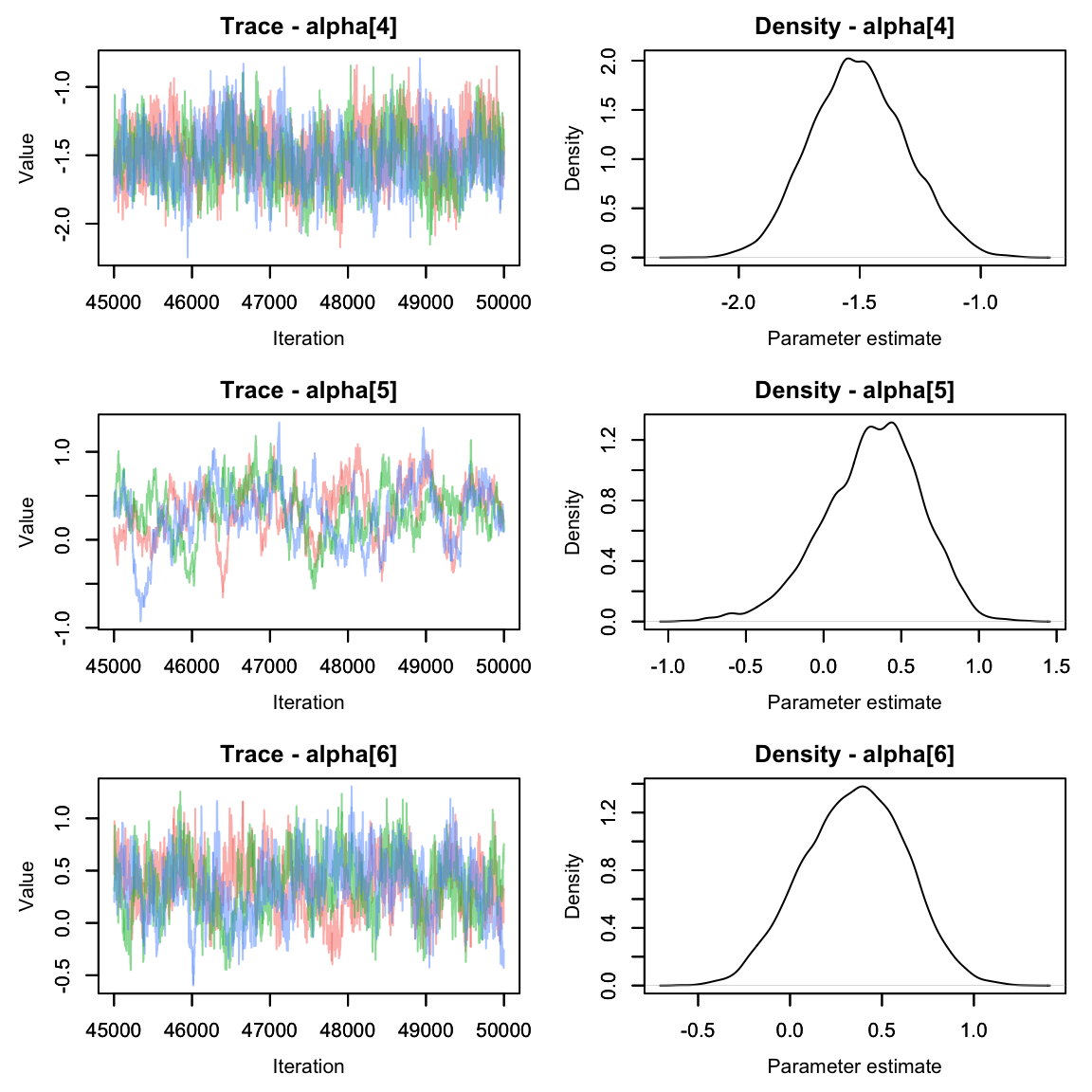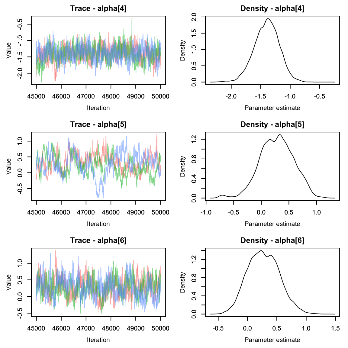 stopCluster(cl)Let’s check out the alpha parameters from this version of the model: