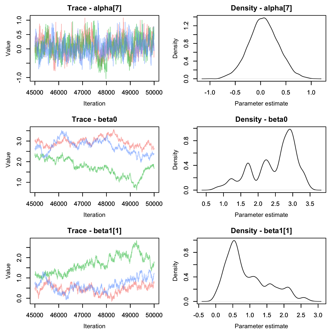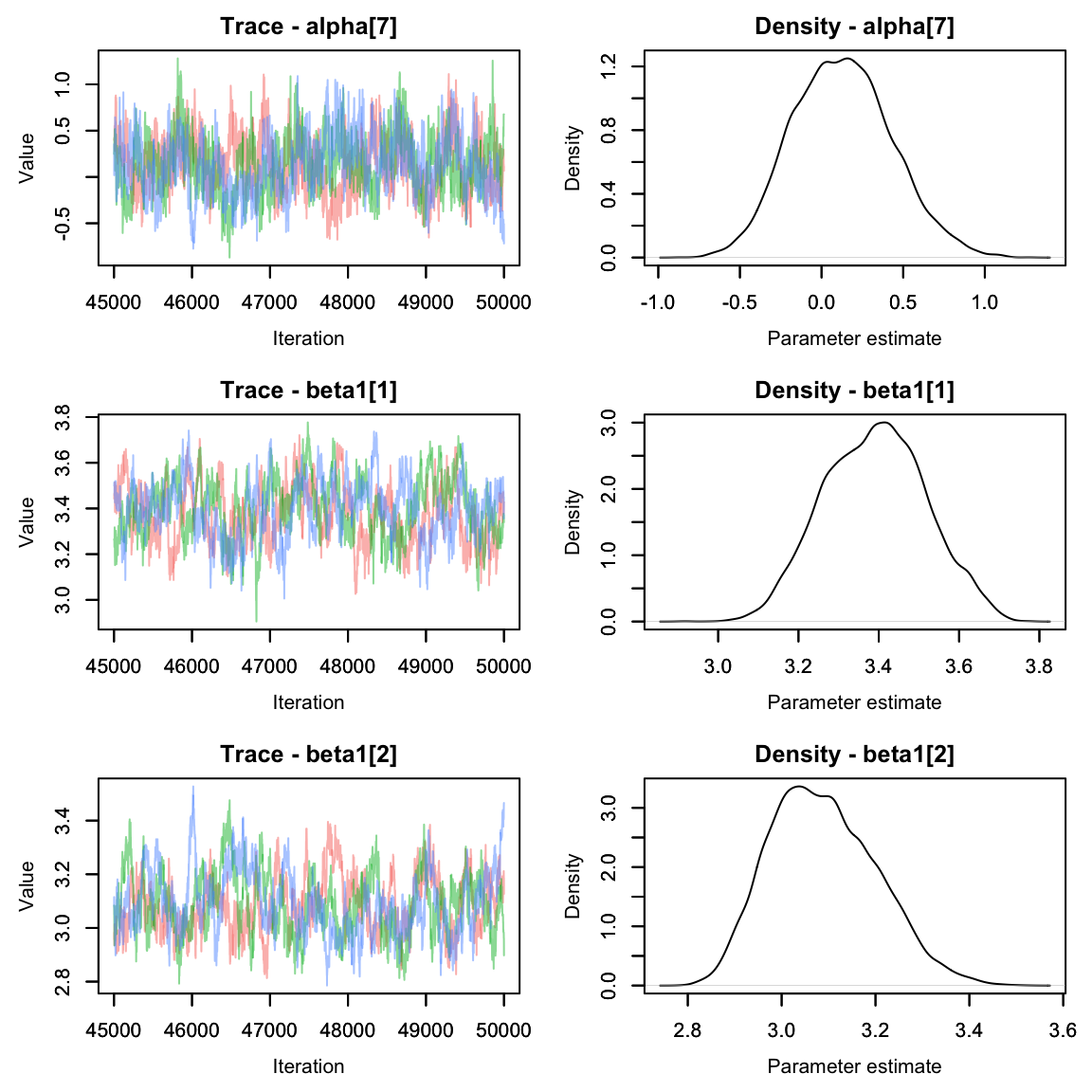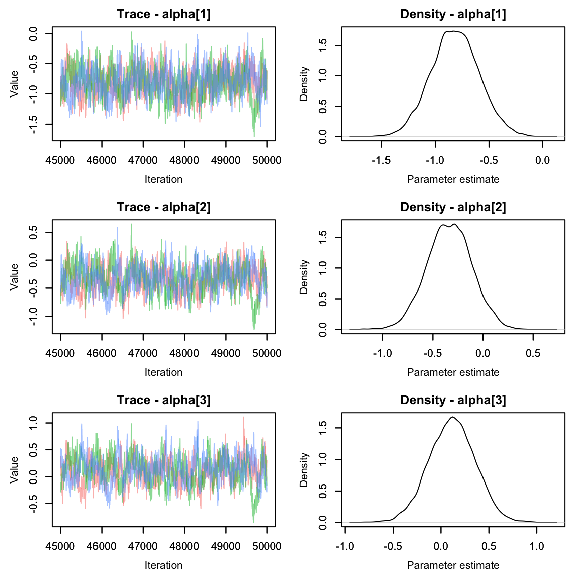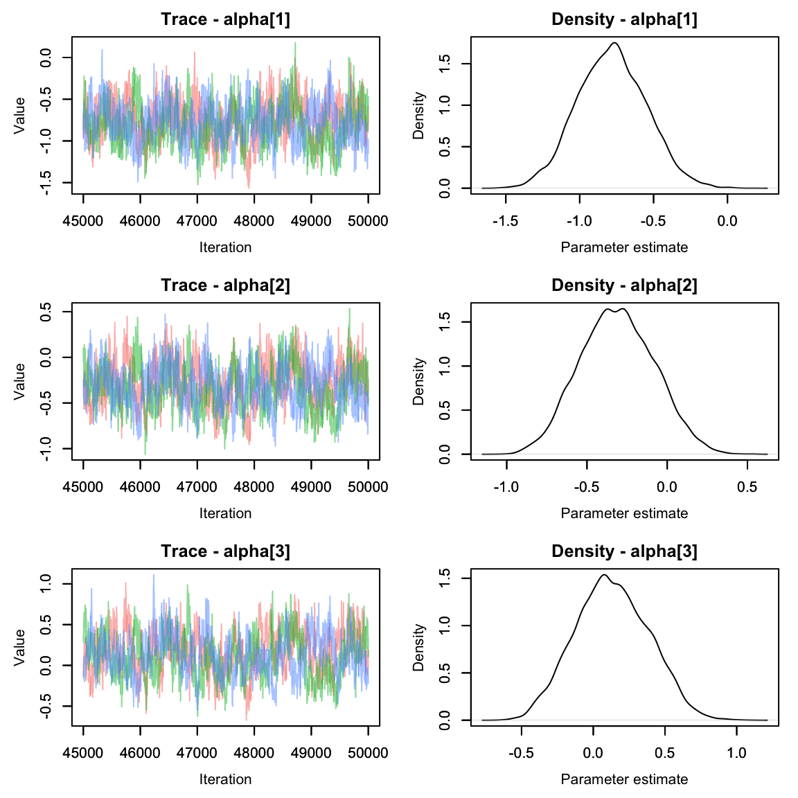 stopCluster(cl)Let’s check out the alpha parameters from this version of the model: