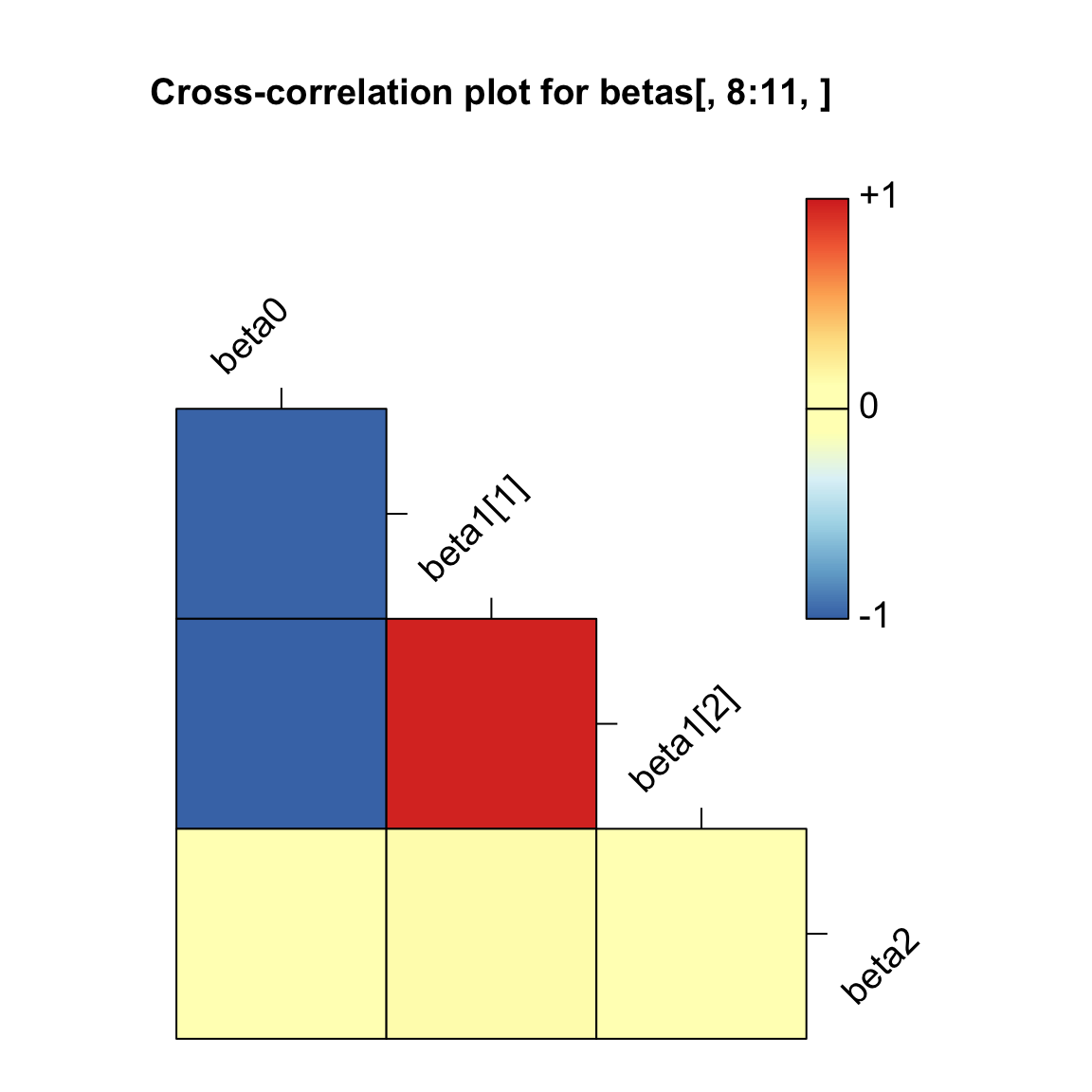 mcmcOutput::crosscorrPlot(betas[,8:11,], addSpace = c(0, 1))